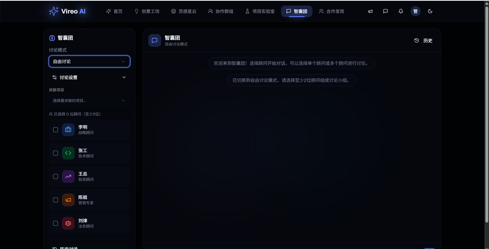 智囊团分析: 模拟不同角色(投资人、技术专家、市场分析师等)对创意进行深度分析