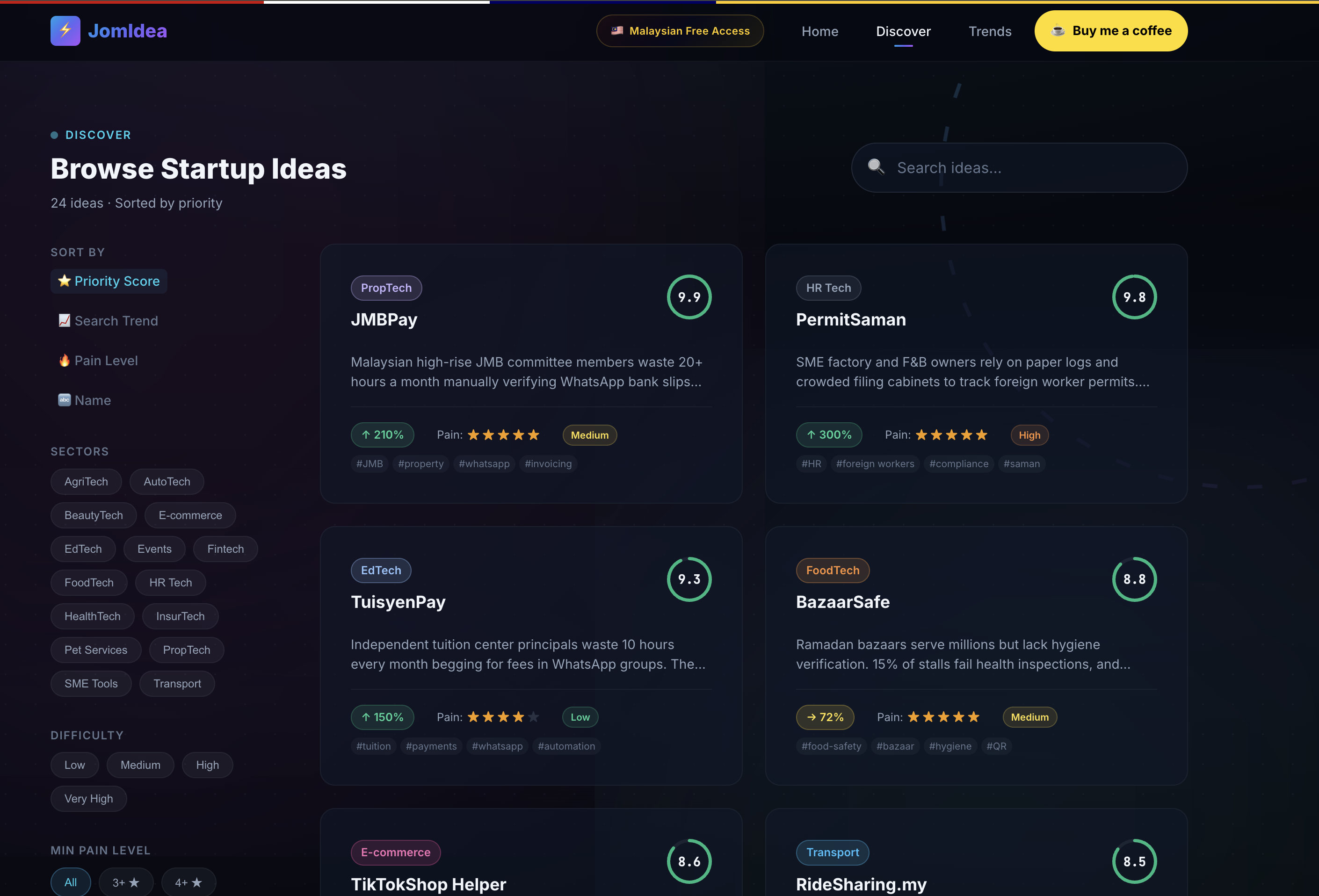 已上线🆓 完全免费JomIdea 是我为自己打造的“创业点子索引器”